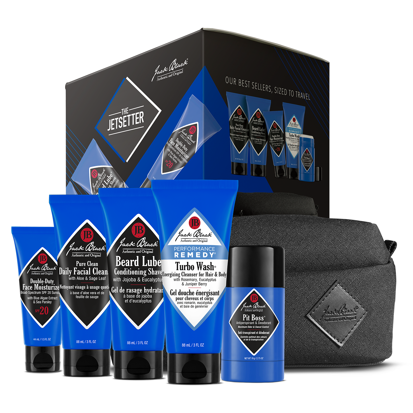 Five Jack Black® bestsellers & a luxe travel bag. For the man who always goes first class. Head-to-toe solutions in travel-friendly sizes, curated for the man on the move.